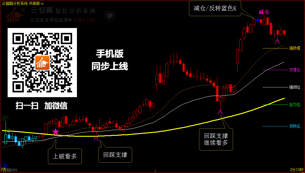 【云智贏】分析系統(tǒng),是一款以分析為主,策略為輔的系統(tǒng)分析軟件,全方位適用于所有市場(chǎng)行情,能夠提示支撐和壓力區(qū)間位置、高低位預(yù)警輔助信號(hào),分析策略建議等,幫您規(guī)避很多震蕩行情,提高對(duì)行情的把控力,有效提高您盯盤(pán)的效率。讓行情分析不再難做!